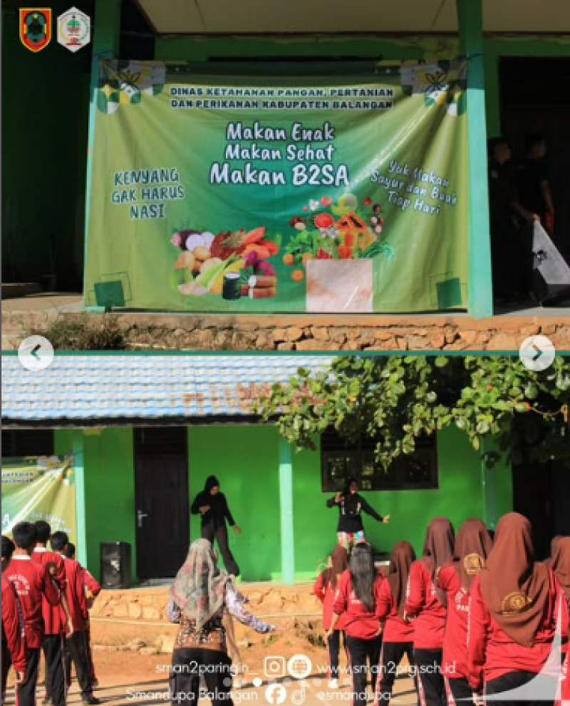 Hari ini, warga SMAN 2 Paringin mengikuti kegiatan bersama Dinas Ketahanan Pangan, Pertanian dan Perikanan Kabupaten Balangan dengan semangat “Makan Enak, Makan Sehat, Makan B2SA (Beragam, Bergizi, Seimbang, dan Aman)”.