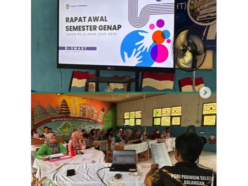 Kamis, 8 Januari 2026, SMAN 2 Paringin kembali memperkuat sinergi melalui Rapat Awal Semester Genap Tahun Pelajaran 2025-2026.Rapat ini menjadi pijakan utama untuk memastikan seluruh program sekolah berjalan selaras dengan visi SMANDUPA B-SMART.Berikut adalah poin-poin strategis yang menjadi fokus pembah...
