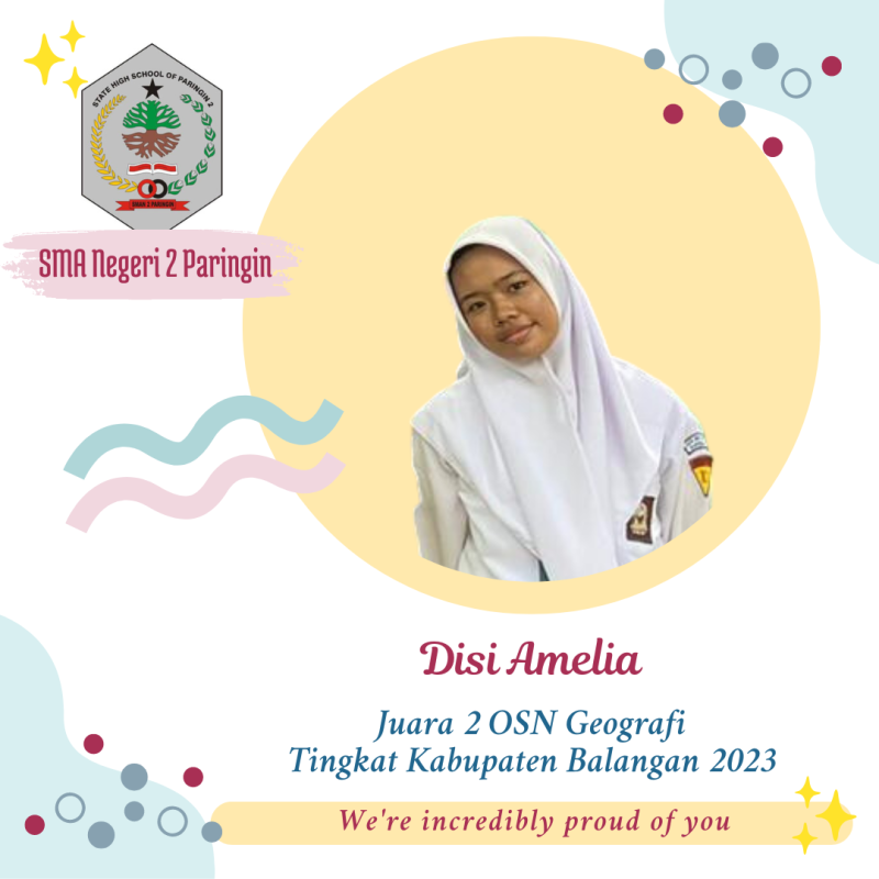 Siswi kami yang bernama Disi Amelia Lolos di Olimpiade Sains Nasional Tingkat Kabupaten untuk mapel Geografi.