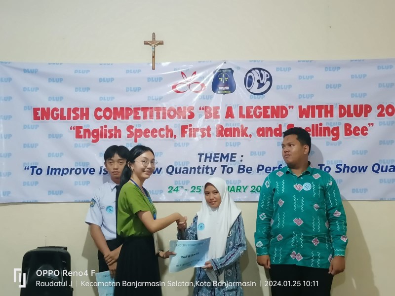 English Competitions "Be A Legent" With Dlup 2024 yang dilaksanakan pada 24 - 25 Januari 2024 di SMAS Frater Don Bos Co Banjarmasin. Cabang yang di lombakan yaitu English Speech, First Ran ...