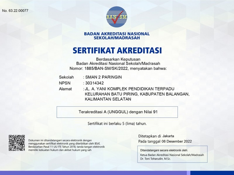 Penerimaan Peserta Didik Baru SMAN 2 Paringin Tahun Pelajaran 2022/2023