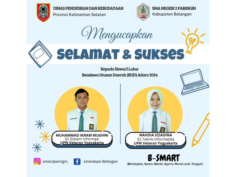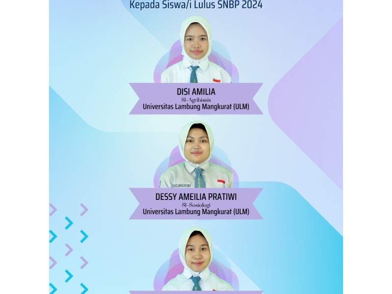 Assalamualaikum bpk/ibu, kami ingin menginformasikan bahwa 15 siswa/i dari total 89 siswa/i kelas 12 kami sdh berhasil melalui ujian masuk perguruan tinggi melalui snbp dan snbt tahun 2024. Dan sebagian siswa/i masih mengikuti tahap akhir seleksi sekolah kedinasan.Dengan prosentase 16,85%,...