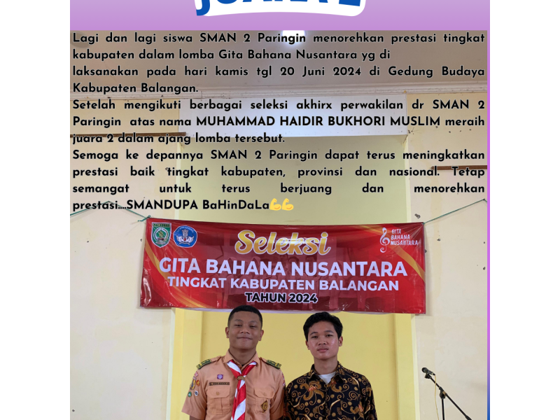 Selamat berjuang di tingkat Provinsi,,,, semoga menjadi awal dari prestasi-prestasimu.... Kami selalu mendukungmu.... Terima kasih ...